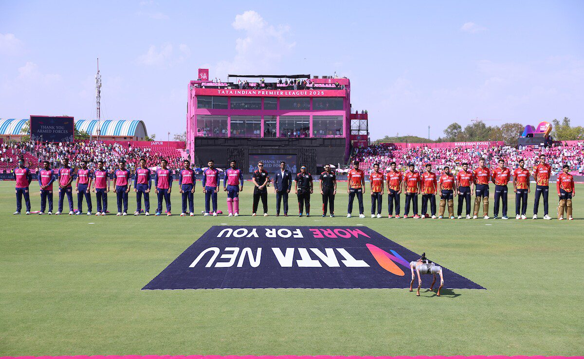 Both Rajasthan Royals and Punjab Kings players lined up for the Indian national anthem to pay tribute to the Indian armed forces ahead of their IPL 2025 clash at Sawai Mansingh Stadium, on Sunday. The RR-PBKS clash is the first proper match to happen after the resumption of the IPL 2025 on Saturday, following a one-week suspension due to the cross-border tensions with Pakistan. The Saturday clash between Royal Challengers Bengaluru and Kolkata Knight Riders was washed out due to rain in Bengaluru without a toss, fading away the excitement of the IPL restart.