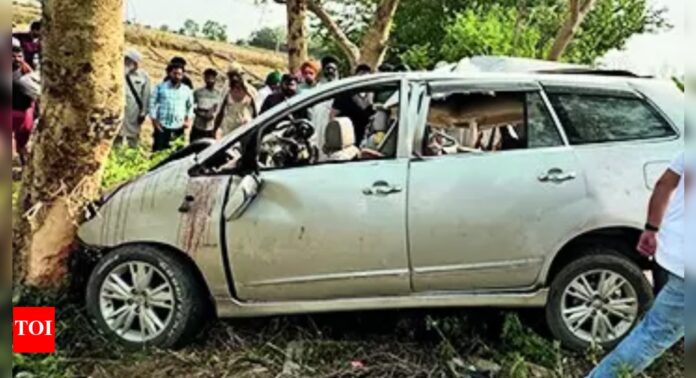 PATIALA: Five schoolchildren were among six killed in a head-on collision between an SUV and a sand-laden truck on Patiala-Samana road near Nassupur village in Punjab’s Patiala district Wednesday afternoon. Seven others were injured in the accident. The truck driver, Bhupinder Singh, has been arrested.The SUV was carrying the students – aged between seven and 12 – to Samana from their school in Patiala’s Sular Road when it collided with the truck. The impact pushed the SUV off the road, and it crashed into a tree. The vehicle’s front portion was mangled beyond recognition and rescuers had to use a JCB to retrieve the bodies of the deceased children.The victims were identified as Bhavyan Sachdeva (8) and his elder sister Bhivanshi Sachdeva (11), Aradhya Lumba (10) and Parv Sachdeva (12), all from Samana. Another 10-year-old girl student, Sehjal Bansal, succumbed at a Patiala hospital. The deceased SUV driver was Balwinder Singh from Fatehpur village.Punjab CM Bhagwant Mann condoled the tragedy. Expressing profound grief and sorrow, he shared his heartfelt sympathies with the members of the bereaved families. He said the injured children were under treatment in various hospitals in Patiala. CM Mann said he was in touch with the district administration and had directed them to ensure the best medical facilities for all the injured.