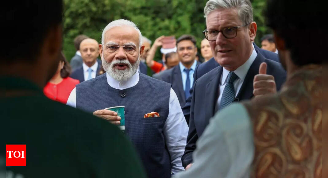 “‘Chai Pe Charcha’ with PM Keir Starmer at Chequers…brewing stronger India-UK ties! ” PM Modi said in a post on X. A man dressed in a kurta and a colourful Nehru-jacket can be seen pouring tea from a kettle in a paper cup labelled, ‘Masala Chai’. The man explained that the tea from Assam and Masala from Kerala. When he was about to pour a tea for PM Modi, the man said, “from one chaiwala to another.”Earlier, the India-UK Free Trade Agreement was signed and formalised. The deal was signed by commerce minister Piyush Goyal and Jonathan Reynold, his British counterpart. The strong rapport between PM Modi and Starmer was evident during their joint media briefing in London on Thursday, following their bilateral discussions.During the press interaction, when interpreters were facilitating translations, Prime Minister Modi casually remarked, “Don’t bother, we can use English words in between. Don’t worry about it.”With a warm smile, Starmer acknowledged, “I think we understand each other well.”The cordial exchange created a positive atmosphere for their interaction, where Prime Minister Modi discussed the India-UK relationship using references from cricket, stating, “There may be a swing and a miss at times but we always play with a straight bat.” He emphasised that both nations are focused on developing a robust and productive partnership.