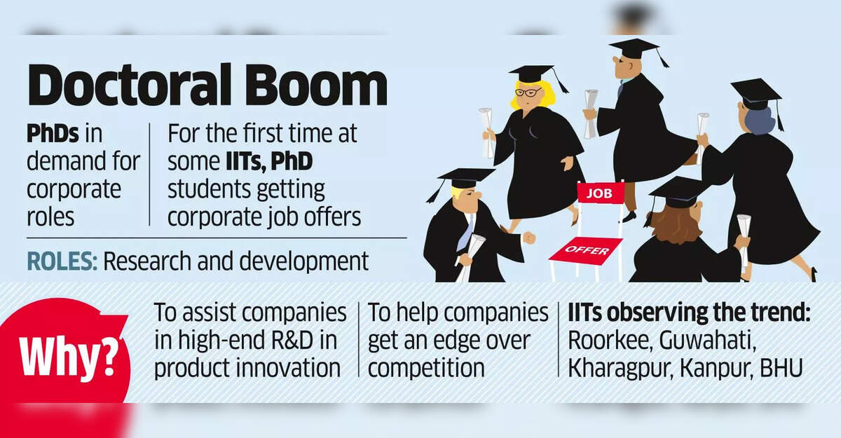 For the first time, two PhD students at IIT Kharagpur have received overseas job offers, both from Japan. In addition, a PhD student received an offer of a ₹1 crore-plus annual packageNew Delhi | Bengaluru: PhD students at the Indian Institutes of Technology (IITs) are increasingly getting corporate job offers for high-end research and development (R&D), a shift from recruitment largely for teaching roles in the past. It is the result of the institutes boosting in-house R&D to develop innovative and competitive products, said professors at the IITs including Kharagpur, Kanpur, Guwahati, Roorkee and BHU.Companies such as Denso, Japan Meteorological Corporation, Caterpillar, Aditya Birla Science & Technology, Tata Steel, AMD, Google, Microsoft, Philips, Samsung, CDAC, Siemens, L&T and Qualcomm have recently hired PhD students from the IITs, according to the institutes.For the first time, two PhD students at IIT Kharagpur have received overseas job offers, both from Japan. In addition, a PhD student received an offer of a ₹1 crore-plus annual package. “This year, hiring of PhD students in corporate R&Ds is a new trend. This is an effort to bolster research and development activities in core engineering fields to stay ahead of competition,” said an IIT Kharagpur professor, who did not wish to be identified. Six PhD students at the institute have received corporate offers, as against none last year.Recruiters like Godrej Enterprises Group have R&D centres in each of their businesses and are in the process of augmenting R&D operations across verticals. “R&D has always been a key priority from our inception as an organisation. We have had PhDs for the same (R&D), in addition to partnerships with institutes and academia,” said Nyrika Holkar, executive director, Godrej Enterprises Group. “For instance, in aerospace, we are in the process of setting up a design centre in Bangalore.” Companies are hiring PhDs primarily for academic and R&D roles, according to Vivek Pancholi, professor-in-charge, placement and internship cell, IIT Roorkee. “We are seeing more companies lining up this year as industries are looking for in-house R&D work to increase competitiveness,” he said. At IIT Roorkee, recruiters such as Atomberg Technologies, ION Group, Intel, Quantiphi, TCS, VGeotech Experts, Terafac Technologies, MaxVolt Energy and several universities have made job offers to PhD students this year. Nine PhD students at the institute have received offers so far.PhD students at IIT Guwahati are getting jobs in specialised areas, mostly through lateral placements, said John Jose, head, Centre for Career Development. “They are landing high-end R&D jobs, often going through their supervisors, unlike the UG and PG students who mainly go through the campus placement route,” he said.Recently, nearly 20-25 students joined companies such as AMD, Google, Microsoft, Philips, Samsung, CDAC, Siemens, L&T and Qualcomm in specialised roles through the regular campus placement route, Jose added.