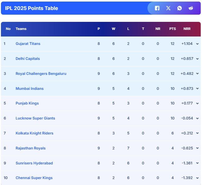 IPL 2025 Points Table, Orange Cap, Purple Cap: RCB Gain One Spot With Win Over RR, MI Slip To… | Cricket News
