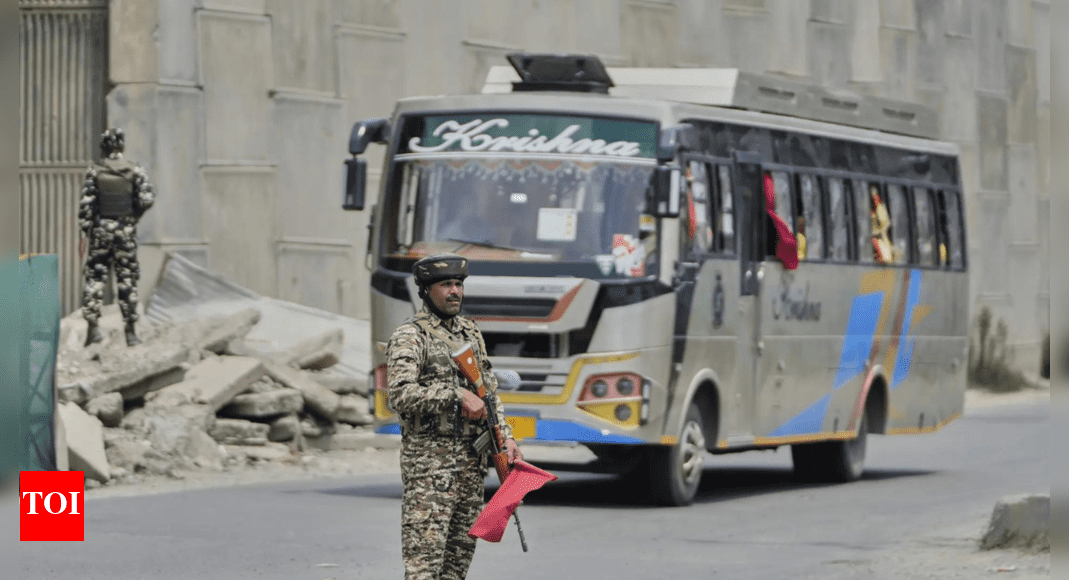 JAMMU/SRINAGAR: At least 36 Amarnath pilgrims suffered minor injuries Saturday after a bus hit another in a Pahalgam-bound convoy that had stopped at Chanderkote in J&K’s Ramban district for breakfast, triggering a chain collision among four buses.The accident occurred around 7.15am after the driver of the first bus reportedly lost control due to brake failure. The pilgrims in the buses were part of a larger group of 6,979 who had left for the cave shrine in Kashmir from a base camp in Jammu.The mishap prompted a directive from J&K lieutenant-governor Manoj Sinha for comprehensive safety measures in vehicles ferrying Amarnath pilgrims. He asked officials to ensure checks at all key locations and guarantee uninterrupted availability of food and medicines along the yatra route. “By the blessings of Lord Shiva, all devotees are safe. Our priority is the safety of all pilgrims,” a govt spokesman said.The 36 injured were treated at Ramban District Hospital and discharged. Most carried on with their journey. The bus whose driver lost control was damaged and its pilgrims were shifted to another vehicle, Ramban SSP Kulbir Singh said, adding only three to four of the injured changed their mind and decided not to go further.“Most of the injuries were minor and all affected yatris were discharged after first aid,” said Ramban deputy commissioner Ilyas Khan, who had rushed with other senior officials to the spot in Chanderkote. LG Sinha spoke to Khan to provide all necessary assistance to the injured pilgrims.According to SSP Singh, the private bus that lost control was from Madhya Pradesh. “The yatra convoy had halted for breakfast at Chanderkote Langer (a community kitchen that provides free food to devotees),” SSP Singh said.Earlier in the morning, the 6,979 pilgrims had left the base camp in Jammu braving heavy rain, officials said. This is the fourth Amarnath batch since the over month-long yatra started on July 3. The 5,196 men, 1,427 women, 24 children and 332 others, including monks, left in two convoys between 3.30am and 4am amid tight security, officials said.(Inputs from Naseer Ganai in Srinagar)