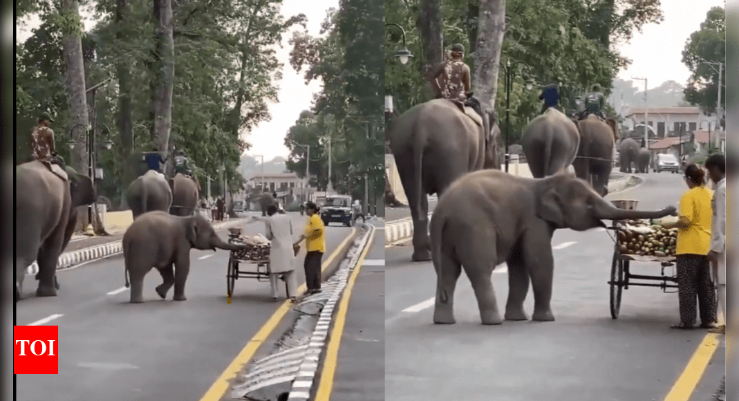 ‘Picture of pure innocence’: Baby elephant stops for a quick snack on road; heartwarming moment goes viral | India News