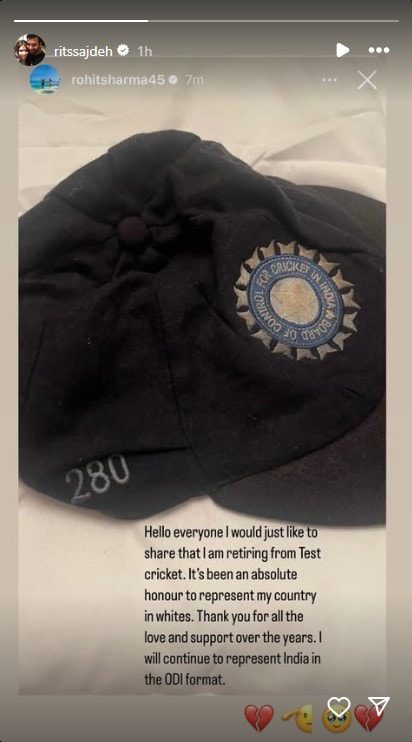 Team India captain Rohit Sharma has officially announced his retirement from Test cricket, bringing down the curtain on a remarkable journey in whites. The announcement was made via his Instagram story on Wednesday, where the opener penned a heartfelt note. “Hello everyone, I would just like to share that I am retiring from Test cricket. It’s been an absolute honour to represent my country in whites. Thank you for all the love and support over the years. I will continue to represent India in the ODI format,” Rohit wrote.