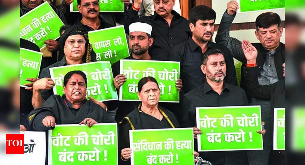 PATNA: RJD is contemplating a boycott of the Bihar assembly polls over the ongoing special intensive revision of electoral rolls, leader of opposition Tejashwi Yadav said Wednesday, flagging what he alleged was an exercise commissioned by BJP to “undermine the democratic process and manipulate voter data”.“If they want to win the elections through fraudulent means, then what’s the point of conducting them?” he told reporters in Patna, just over a week after questioning the authenticity of emerging data about illegal immigrants infiltrating the electoral rolls through fraud.Tejashwi said he wouldn’t rule out RJD skipping an electoral process it didn’t believe in. “Ho sakta hai (That is possible). We will consult our (INDIA bloc) partners and the people before taking a final call,” he said.Tejashwi made the remarks at a joint presser with INDIA bloc partners.Congress backed RJD’s stand, saying it was aware of allegedly largescale irregularities in revising the rolls. “We will discuss the issue… Agar vote hi chala gaya toh phir… (If potential votes vanish, then…),” Congress legislature party chief Shakeel Ahmad Khan said, leaving the rest unsaid. CPI-ML state secretary Kunal said it was “too early to say anything about a poll boycott”, although he acknowledged RJD’s concern about many names being struck off the electoral rolls.JD(U) said Tejashwi’s boycott threat reflected his apprehension about the opposition’s grim prospects in the elections later this year.