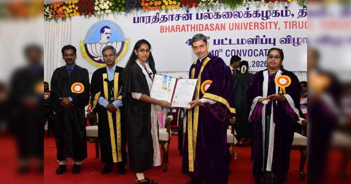 The proposed bill ensures that the commission will include presidents of all three councils, thereby maintaining ‘harmony’ in the functioning of the commission and its verticals.Trichy: The Viksit Bharat Shiksha Adhisthan (VBSA) Bill, proposed by the Centre to overhaul higher education by replacing UGC, AICTE and NCTE with a single regulatory body, carries the essence of National Education Policy (NEP) 2020, said NAAC director G Kannabiran at Bharathidasan University’s 40th convocation on Wednesday.Addressing the gathering, Kannabiran said under NEP 2020, higher education institutions are envisioned as public-spirited, self-governing autonomous bodies supported by good governance, transparency and public disclosure. The Bill has faced strong opposition from Tamil Nadu MPs and academicians and is currently under review by a joint parliamentary committee. He said the overarching commission would ensure a ‘unified direction,’ aligned with national priorities, while the remaining functions of higher education would be decentralised through a regulatory council, an accreditation council and a standards council. The proposed bill ensures that the commission will include presidents of all three councils, thereby maintaining ‘harmony’ in the functioning of the commission and its verticals. “The new commission and its verticals mandate representation from States through membership and representatives from state universities,” said Kannabiran, who is also a member of the planning board of Bharathidasan University appointed by governor R N Ravi. Continuing his address at the university where NAAC accreditation has expired in 2024 , Kannabiran said with more than 75% of colleges and 55% of universities yet to undergo accreditation, a simple framework called ‘basic accreditation’ would be launched soon. “The proposed maturity-based system is designed to place institutions at levels ranging from 1 to 5, with Level 5 institutions expected to emerge as global centres for multidisciplinary education and research. The committee also plans to provide handholding support to first-time institutions seeking accreditation and to mentor institutions in rural and remote locations,” he added.The governor distributed degree certificates to 780 candidates, including 690 PhD scholars and 90 rank holders. In addition, 96,818 students from around 150 affiliated institutions were awarded degrees in absentia. Others present on the dais included syndicate members, VC committee convenor E Sundaravalli, and Registrar R Kalidasan.Higher education minister Govi Chezhian, who is also pro-chancellor, stayed away. School education minister Anbil Mahesh Poyyamozhi, who was conferred a PhD, also did not attend. Out of the 691 PhD students conferred in person, the minister was the only one who was awarded the degree in-absentia. This is the third instance this year of the higher education minister or the concerned minister skipping a convocation since governor R N Ravi walked out of the assembly earlier this month. Chezhian did not attend the Madras University convocation, while fisheries minister Anitha Radhakrishnan stayed away from Tamil Nadu Veterinary and Animal Sciences University convocation. “The last time the governor and the minister were seen together at a convocation was in 2023, when Prime Minister Narendra Modi was present,” a BDU professor said.