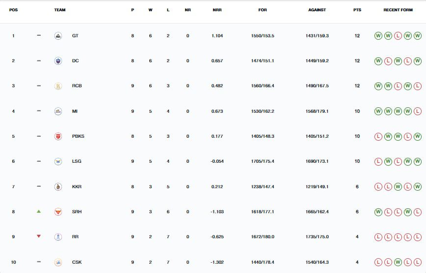 As for the strongest contenders for the playoffs spots, Gujarat Titans and Delhi Capitals have emerged as best sides so far this season while Royal Challengers Bengaluru have also done well, especially away from home. With 4 consecutive wins to their name, Mumbai Indians have also regained their top form.
